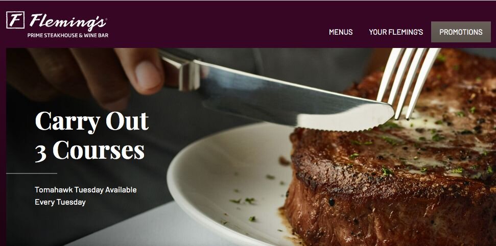 One way to stay top of mind for guests is by creating a delivery or pick up offering that is only available on a certain day of the week — whether Taco Tuesday, Margarita Monday or in the case of Fleming’s Prime Steakhouse & Wine Bar, Tomahawk Tuesday. Offering guests a 3-course dinner for two to enjoy at home, Fleming’s is tying their offer to a specific day, drumming up excitement by only offering it once a week. Known in marketing circles as ‘scarcity marketing,’ this specific tactic plays into “consumers’ fear of losing their freedom of choice. Simply put, if a product isn’t [widely] available, it suddenly becomes more attractive.”