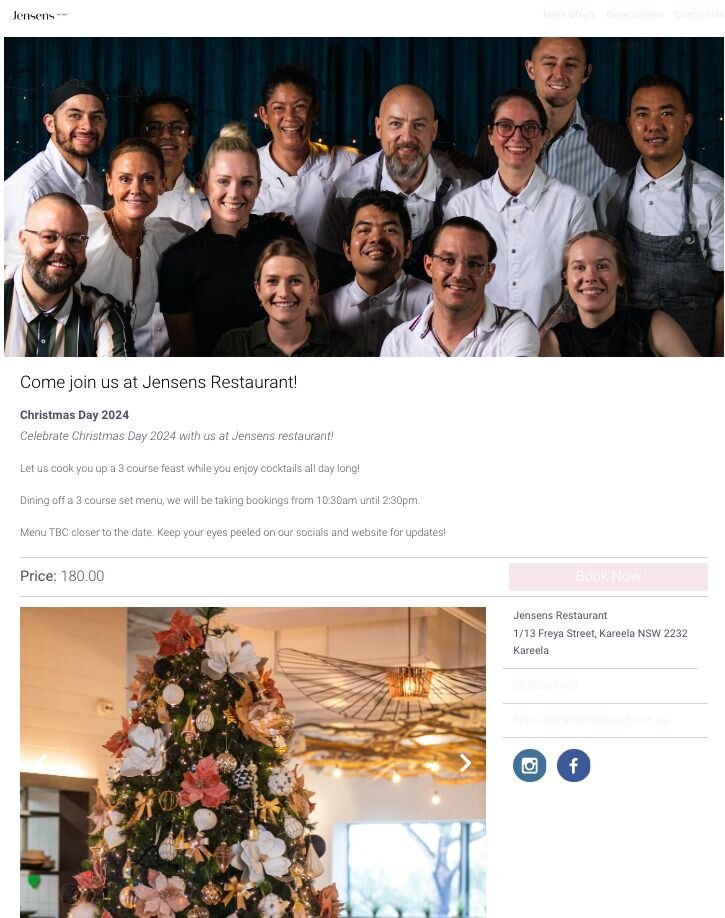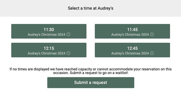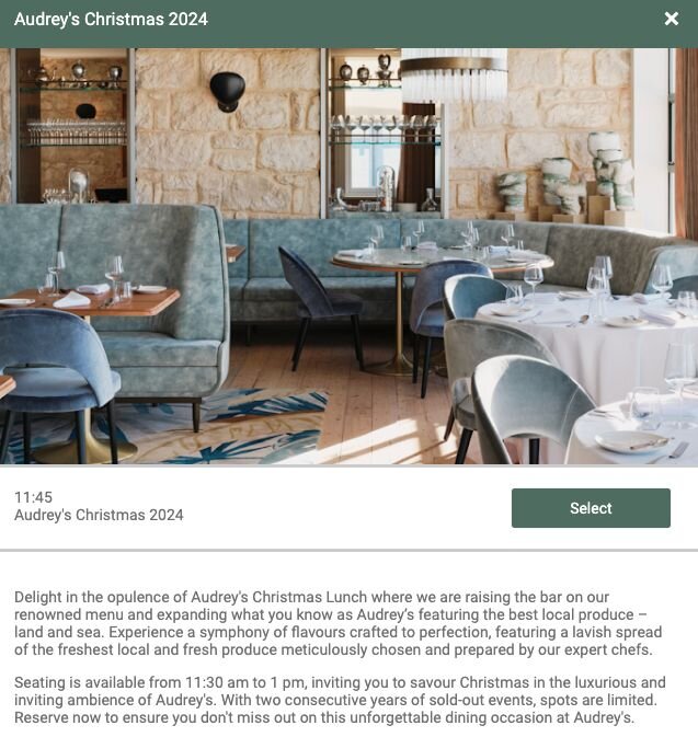 Audrey’s created an events reservations page for their Christmas Day Lunch event, which streamlines how guests can reserve, prepay and even note dining restrictions at booking.