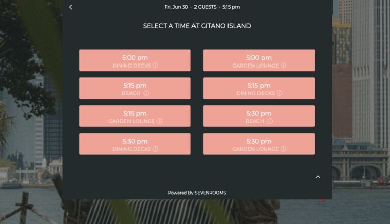 Using SevenRooms’ reservation widget, Gitano, a New York-based partner, offers a variety of seating options for their guests in their outdoor dining decks and garden lounge.