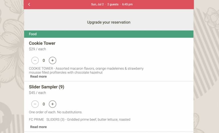 Offering upsell opportunities during the booking process such as wine pairings, prix-fixe events or select appetizers is a great way to get guests excited about dining with you (and drive pre-paid revenue).