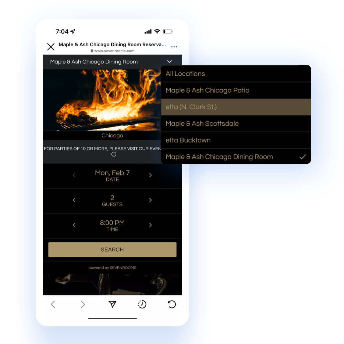 A white-labeled booking widget also gives multi-venue operators the ability display reservation availability for several locations in one place, encouraging crossover bookings and keeping business “in the family”: