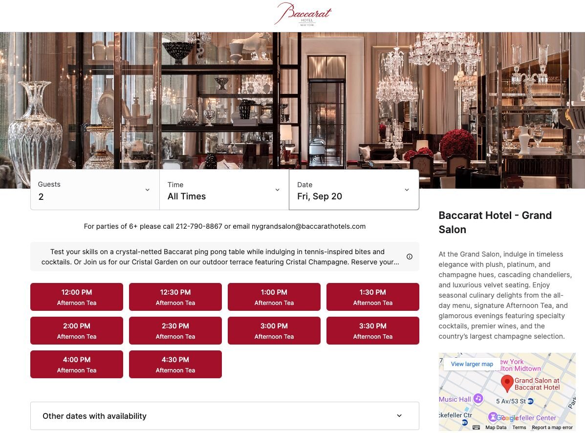 Consider this stellar example from Baccarat Hotel New York— one look at their landing page, and you’ll see why guests can’t resist booking their afternoon tea.