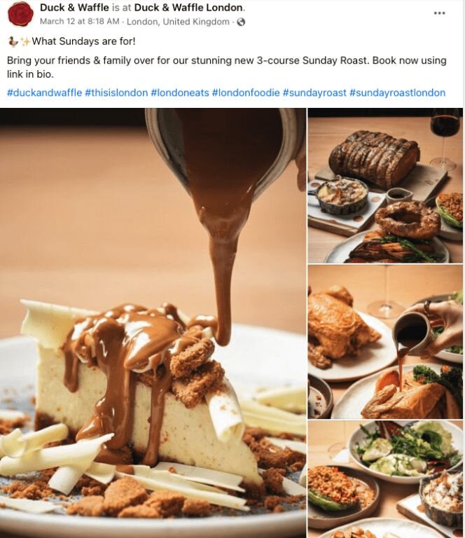 Duck & Waffle showcases its delicious fare and encourages guests to book via its Facebook page.