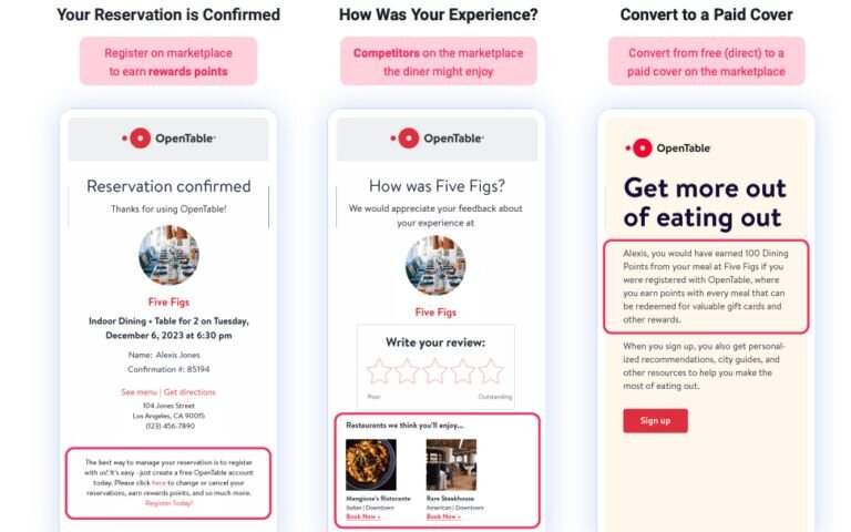 It’s no secret that when you foster guest loyalty, you build a stronger business and a more reliable source of revenue. However, this rings true for both third-party apps and restaurants. Services like OpenTable work to build their own base of loyal users at the expense of promoting your business. They also promote your direct competitors, which is extremely detrimental. Take a look at how OpenTable pushes THEIR guest loyalty agenda by promoting other restaurants:
