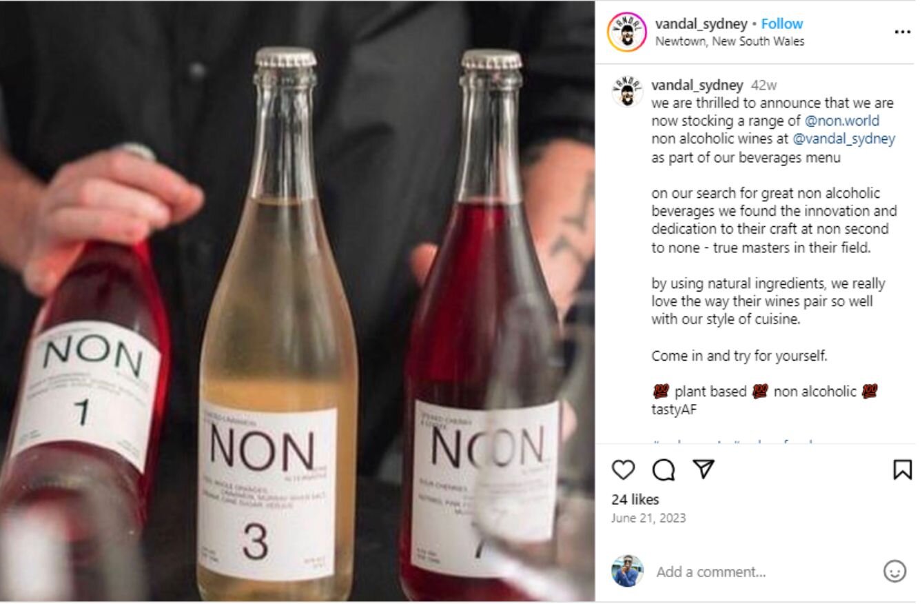 Vandal Sydney does exactly that in the image below, disturbing the pattern of three standing wine bottles by tilting one: