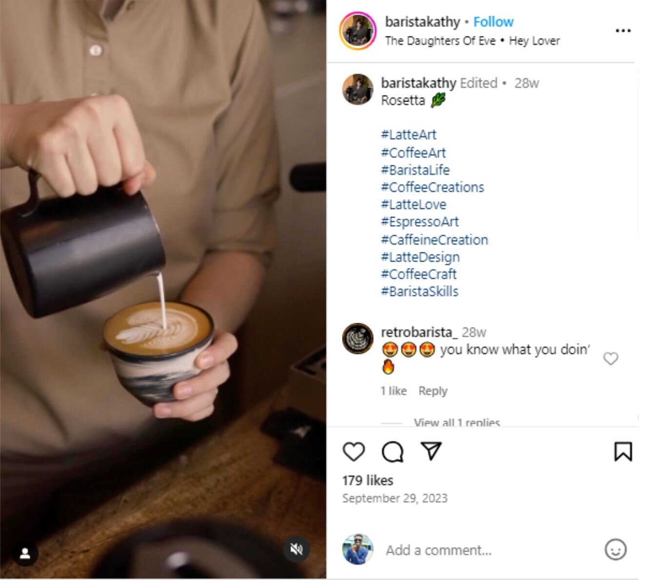 Engage the other senses by showing a coffee in mid-pour. Image Source: Instagram
