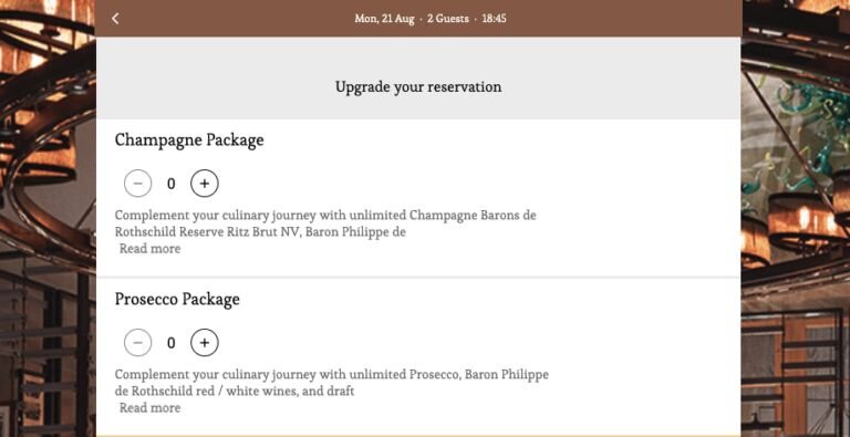 Below, Singaporean restaurant, Colony in the Ritz Carlton, Millenia, uses SevenRooms’ reservation system to entice special occasion diners with Champagne and Prosecco upgrades when booking. This not only brings in more revenue to the restaurant but enhances the guests’ experience.
