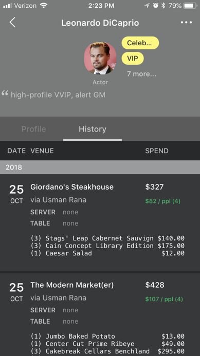 When all of your competitors are struggling with the labor shortage, you have to stand out in other ways. Creating a memorable guest experience will transform casual visitors into regulars and evangelists who will rave about your restaurant to others. Cloud-based restaurant software that collects data about your guests empowers you to give your guests a memorable, personalized dining experience. SevenRooms is so much more than just a restaurant reservation system. The platform also helps restaurateurs like you gather data on your guests, like reservation history (below_ as well as food allergies and anniversaries, to build customized guest profiles.